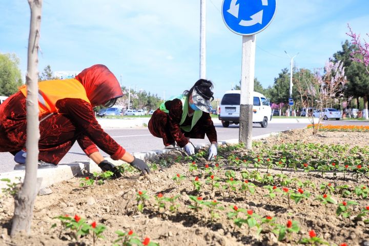 От районного центра до самых отдаленных махаллей активно ведутся работы по благоустройству: создаются новые цветники, высаживаются разнообразные декоративные растения, обеспечивается их уход.