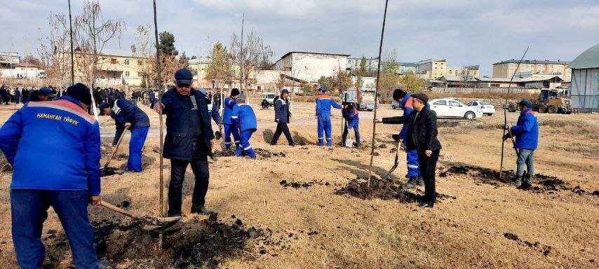 В рамках проекта «Зеленое пространство» проводится высадка саженцев деревьев и в Наманганском районе. Акция прошла сегодня в парке «Етти булок».