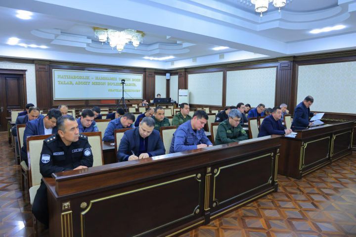 Также полковник Шухрат Алиев обратил особое внимание на важность выполнения задач в «красных» зонах области по основным целевым показателям, подчеркнув необходимость организации адресной работы, запуска работы в установленные сроки вновь созданных правоохранительных органов, дальнейшем совершенствовании действующих, а также ускорения установки камер видеонаблюдения.