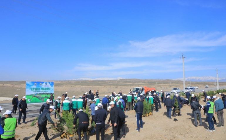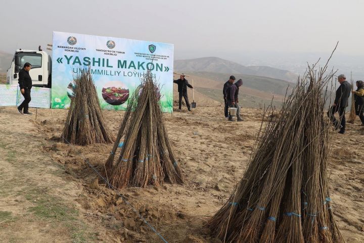 В Янгикурганском районе состоялось очередное масштабное мероприятие по высадке деревьев в рамках общенационального проекта «Зеленое пространство».