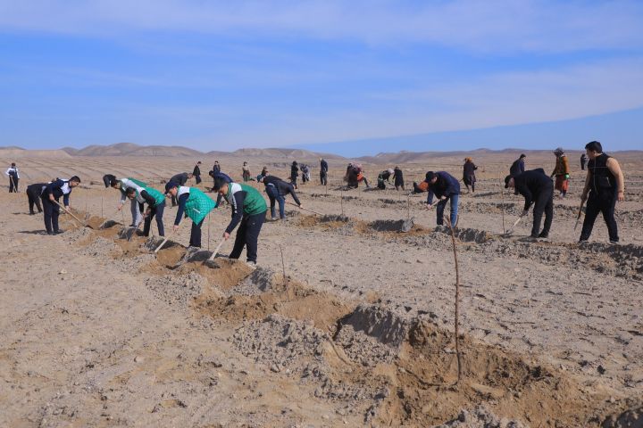 В рамках общенационального проекта «Зеленое пространство» и хашара на территории создаваемого 100-гектарного индустриального интенсивного сада высажено 66,6 тыс. саженцев абрикоса сорта «Mikado».