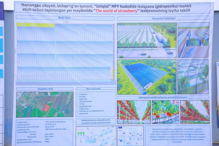 В Учкургане расширяются масштабы выращивания клубники методом гидропоники, а также планируется строительство современного «Экобазара».