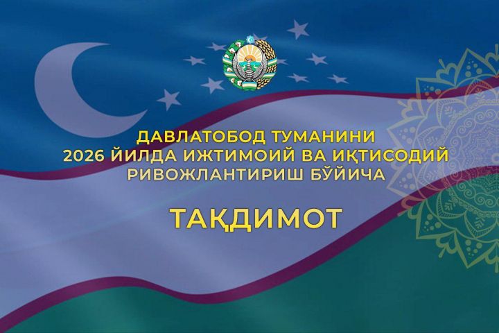 Состоялась презентация программы социально-экономического развития Давлатабадского района, рассчитанной на 2026 год. С перспективными проектами, запланированными к реализации, ознакомился хоким области Шавкатжон Абдураззаков.