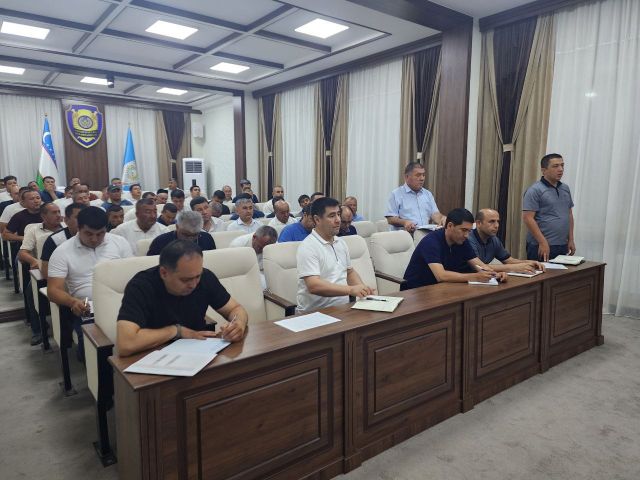 В мероприятии приняли участие начальник областного управления Департамента А. Халилов, руководители областного налогового управления и территориальных налоговых инспекций, начальник бассейнового управления ирригационных систем «Нарын-Сырдарья» и руководители районных отделов, а также руководители областного объединения фермеров.
