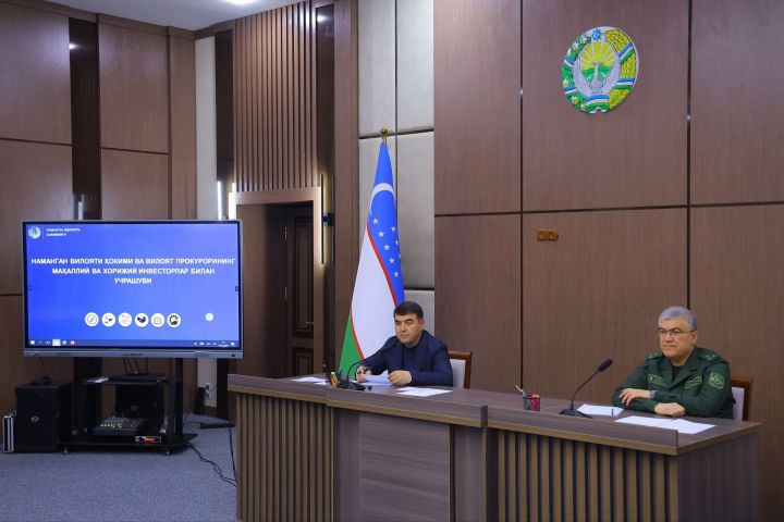 В Намангане состоялась очередная встреча хокима области с местными и зарубежными инвесторами. Открытый диалог прошел в комплексе «Маърифат маскани», где глава региона Шавкатжон Абдураззаков совместно с прокурором области У. Мадрахимовым выслушали обращения более 40 представителей бизнеса.