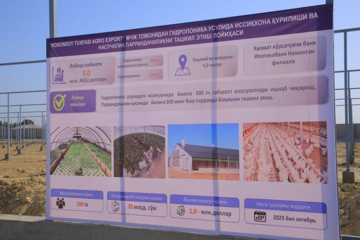 ООО «Косонсой тухфаси агро экспорт» построит гидропонную теплицу и внедрит немецкие технологии содержания птиц.