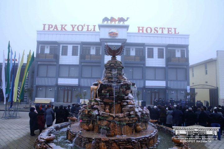 Трехэтажный комплекс, построенный ООО «Pop fayz stom» за 17 млрд. сумов, включает хостел на 30 человек, швейный цех на 50 человек, ресторан на 50 человек, тренажерный зал, рассчитанный на 30 женщин и девушек. Здесь также к услугам четыре сауны, которые могут одновременно принять 50 человек, и общие сауны, обслуживающие одновременно 20 человек, а также магазины строительных материалов и мебели.