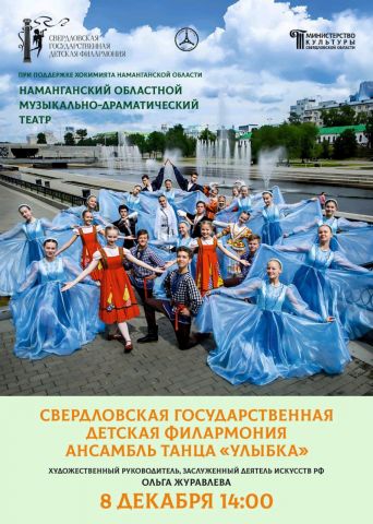 8 декабря этого года в 14:00 в областном музыкально-драматическом театре знаменитый танцевальный ансамбль «Улыбка» Свердловской государственной детской филармонии Российской Федерации представит вам специальный БЕСПЛАТНЫЙ КОНЦЕРТ!