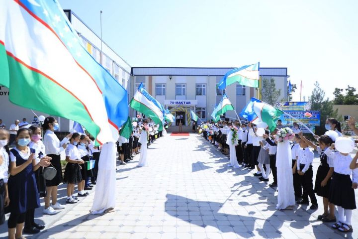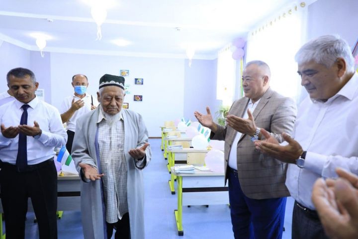 Хоким района Аъзамжон Султанов поздравил всех с 30-летием независимости и пригласил их осмотреть школу.