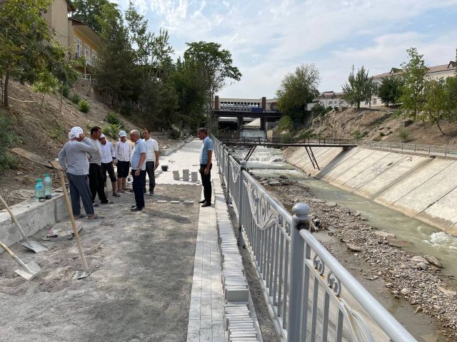 Хоким города Намангана Гофиржон Джамалов сегодня ознакомился с ходом благоустройства на участке Намангансая в махалле «Гишткуприк».