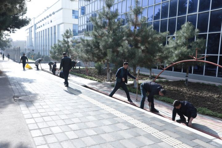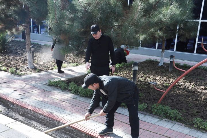 В ходе мероприятия были очищены арыки и пешеходные дорожки вокруг здания, приведена в порядок прилегающая территория. Также проведена формовка деревьев и побелка их стволов. Кроме того, на территории высажены саженцы декоративных и плодовых деревьев.