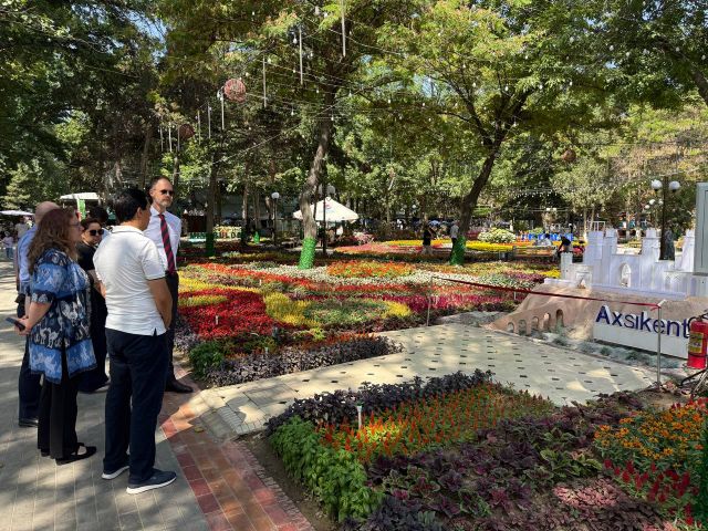 На 64-м Международном фестивале цветов в Ташкенте царит праздничная атмосфера: почетными гостями его стали постоянный координатор ООН в Узбекистане Сабина Махл и посол Швейцарии в Узбекистане Константин Оболенский.