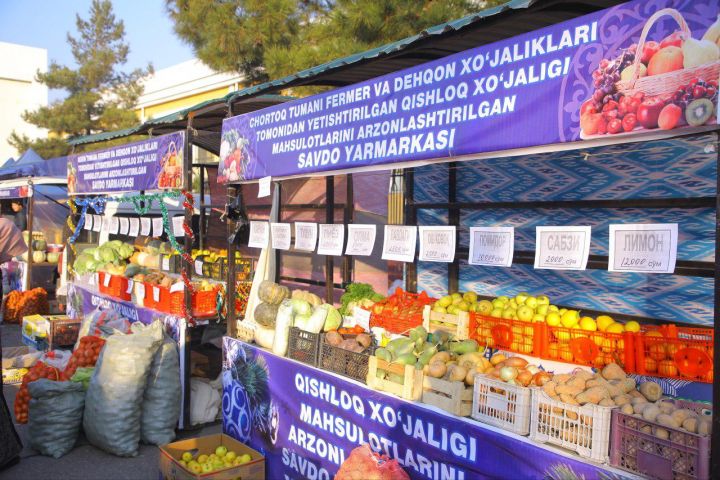 Здесь по сниженным ценам реализуется продукция, привозимая с дехканского рынка «Чорсу», а также из Уйчинского, Чартакского, Янгикурганского, Нарынского и Учкурганского районов.