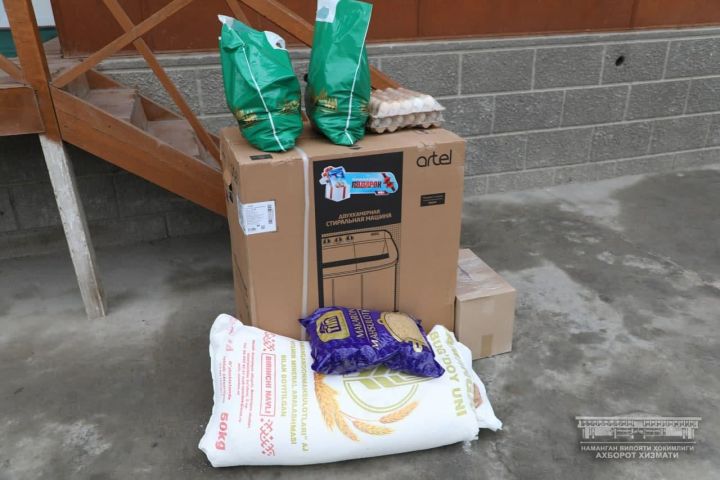 Фатима-оя попросила помочь ей с получением коляски, так как она не может передвигаться самостоятельно. От имени хокимията женщине выдали инвалидную коляску, стиральную машину и набор продуктов.