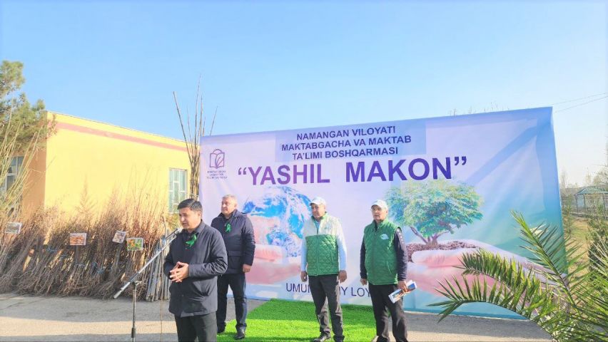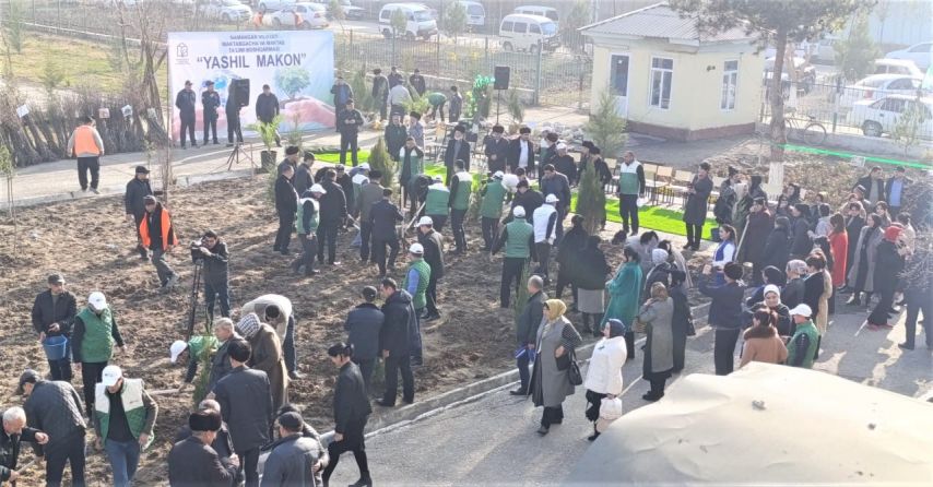 В этой акции в рамках общенационального проекта «Зеленое пространство» участвовали хоким района Садриддин Муминов, начальник облуправления дошкольного и школьного образования Аъзамжон Исаков, сотрудники управления, ветераны и представители общественности.