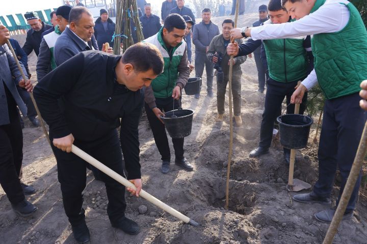 В Мингбулакском районе состоялась акция по посадке саженцев, организованная в рамках общенационального проекта «Зеленое пространство». В мероприятии принял участие хоким области Шавкатжон Абдураззаков.