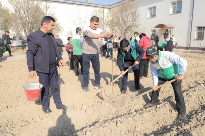 Аналогичное мероприятие прошло также в государственном ДОО № 55 Давлатабадского района. Здесь высажены 200 саженцев деревьев, что стало важным вкладом в благоустройство территории.