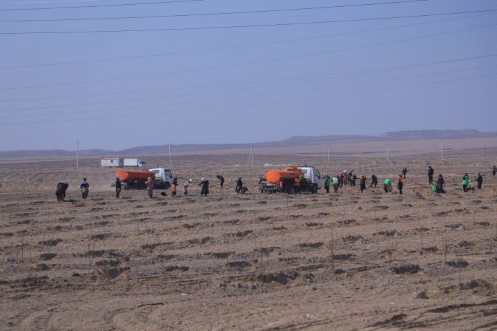 В рамках общенационального проекта «Зеленое пространство» и хашара на территории создаваемого 100-гектарного индустриального интенсивного сада высажено 66,6 тыс. саженцев абрикоса сорта «Mikado».