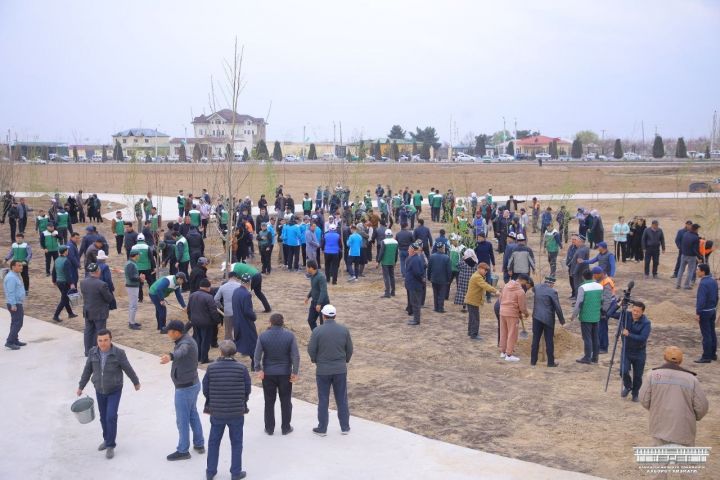 В парке «Новый Узбекистан» Давлатабадского района высажено 500 саженцев декоративных деревьев в рамках общенационального проекта «Зеленое пространство».