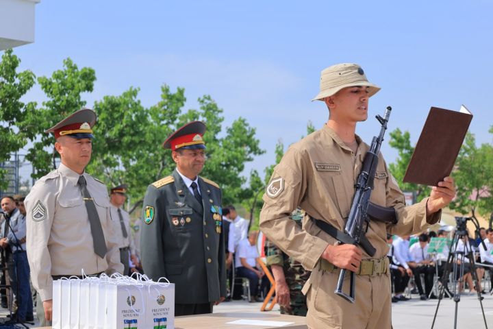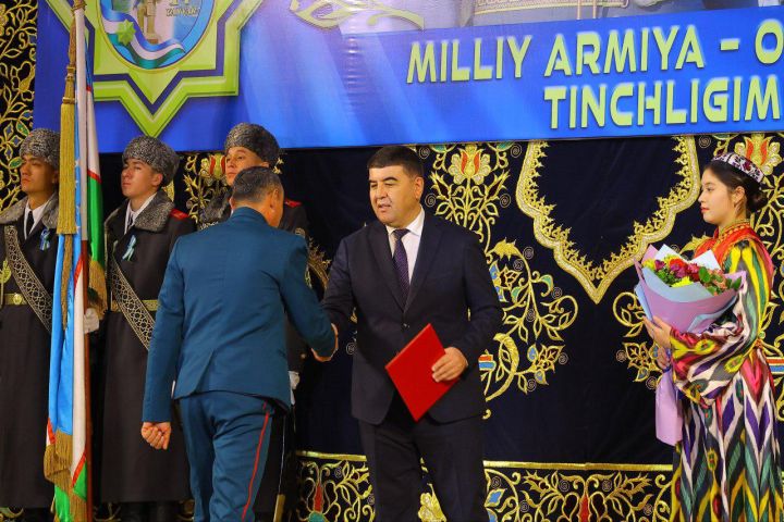 В ходе мероприятия группе военнослужащих были торжественно вручены Почетные грамоты хокима области и памятные подарки за образцовую службу и вклад в обеспечение безопасности страны.
